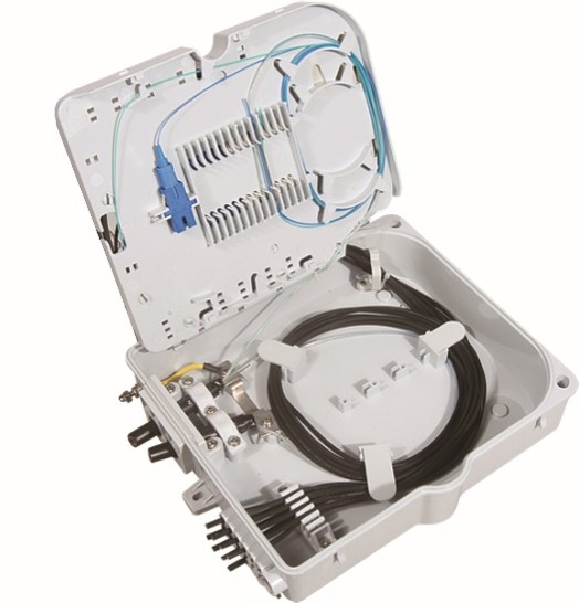Επίτοιχος οπτικός κατανεμητής εξωτερικού χώρου 16 πορτών τύπου SC/APC από υψηλής ποιότητας ABS, για τερματισμό δικτύων οπτικών ινών με δυνατότητα κλειδώματος.